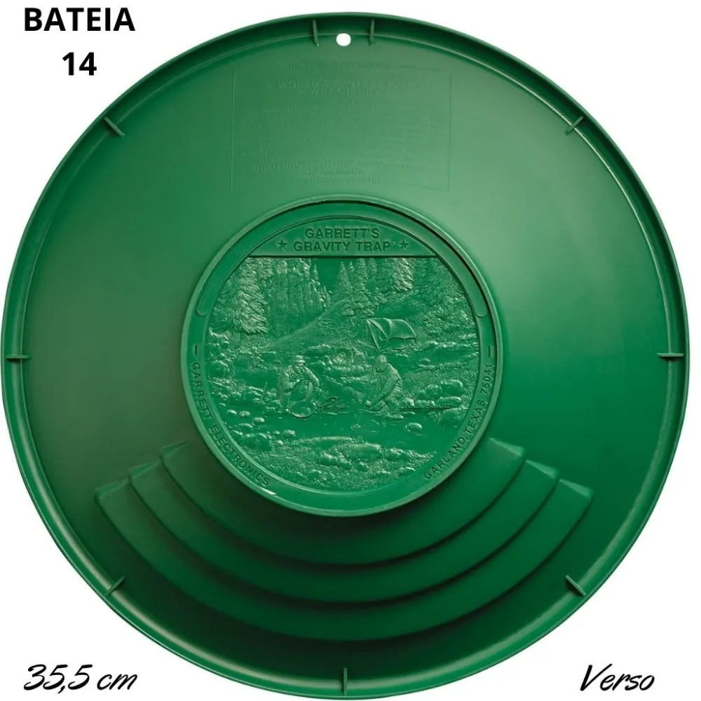 A Bateia Garrett 14 polegadas, ou seja, 35,56 centímetros de circunferência é ideal para busca de ouro em córregos, pedreiras, rios e para testes se há ouro no local. A Bateia Garrett 14 polegadas é fácil de manusear. Não é preciso cursos para aprender operar esta bateia. A Bateia Garrett 14 Polegadas Gold Trap é ideal para testes onde os detectores de metais encontraram ouro de pepita.
